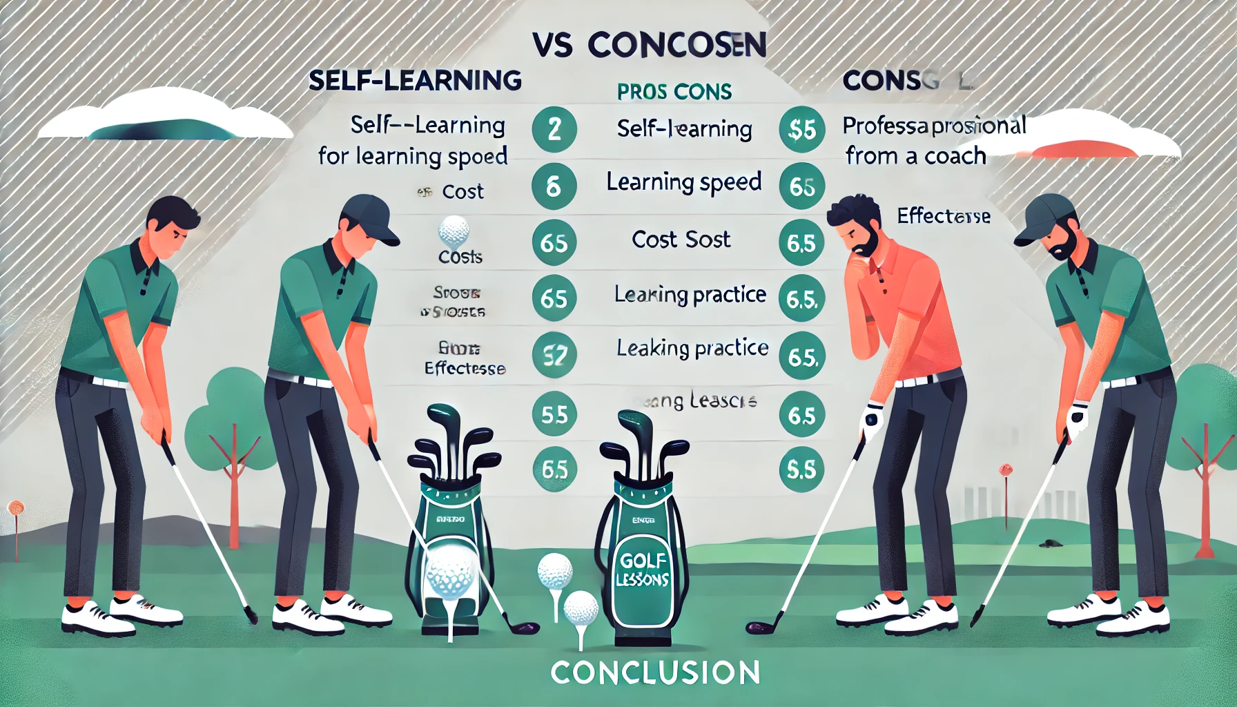 • 예산이 적고 여유 시간이 많다면 독학 추천: 자유롭게 배우고 싶은 분들에게는 독학이 적합합니다. 유튜브, 온라인 자료, 골프 관련 도서를 통해 배우며 실력을 쌓을 수 있습니다.
