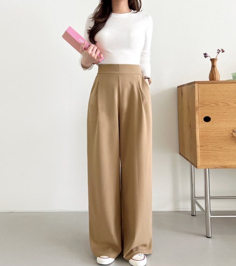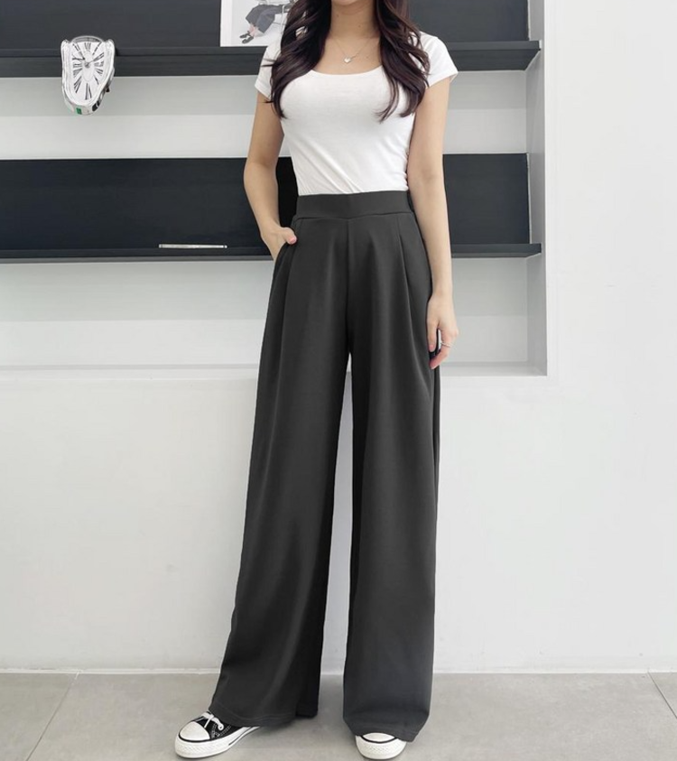 가비진 여성용 숏/롱 기장선택! 스판 좋은 핀턱 밴딩 일자 와이드 팬츠 키작녀 바지 빅사이즈까