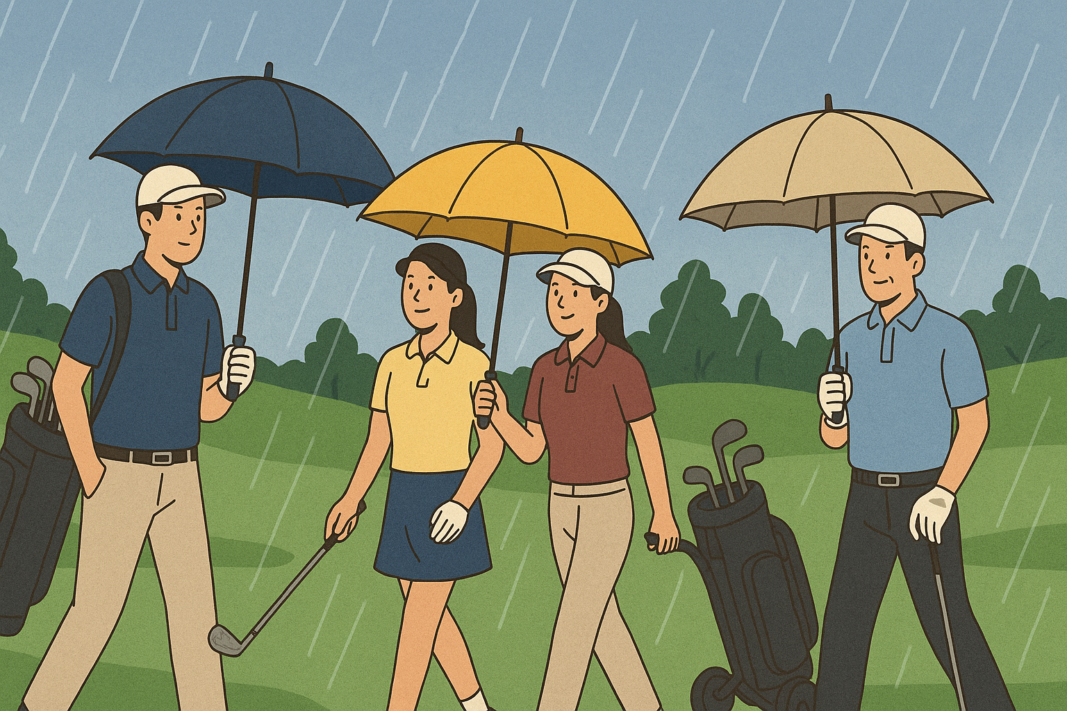 - 골프 우산: 비를 피하면서도 스윙에 지장 없는 크기