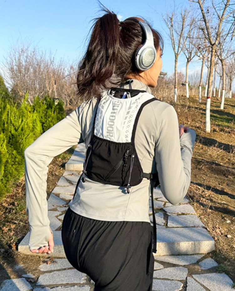 - 장거리 러닝이나 트레일 러닝에서는 가벼운 베스트형 음료 수납 팩과 함께 사용해도 좋습니다.